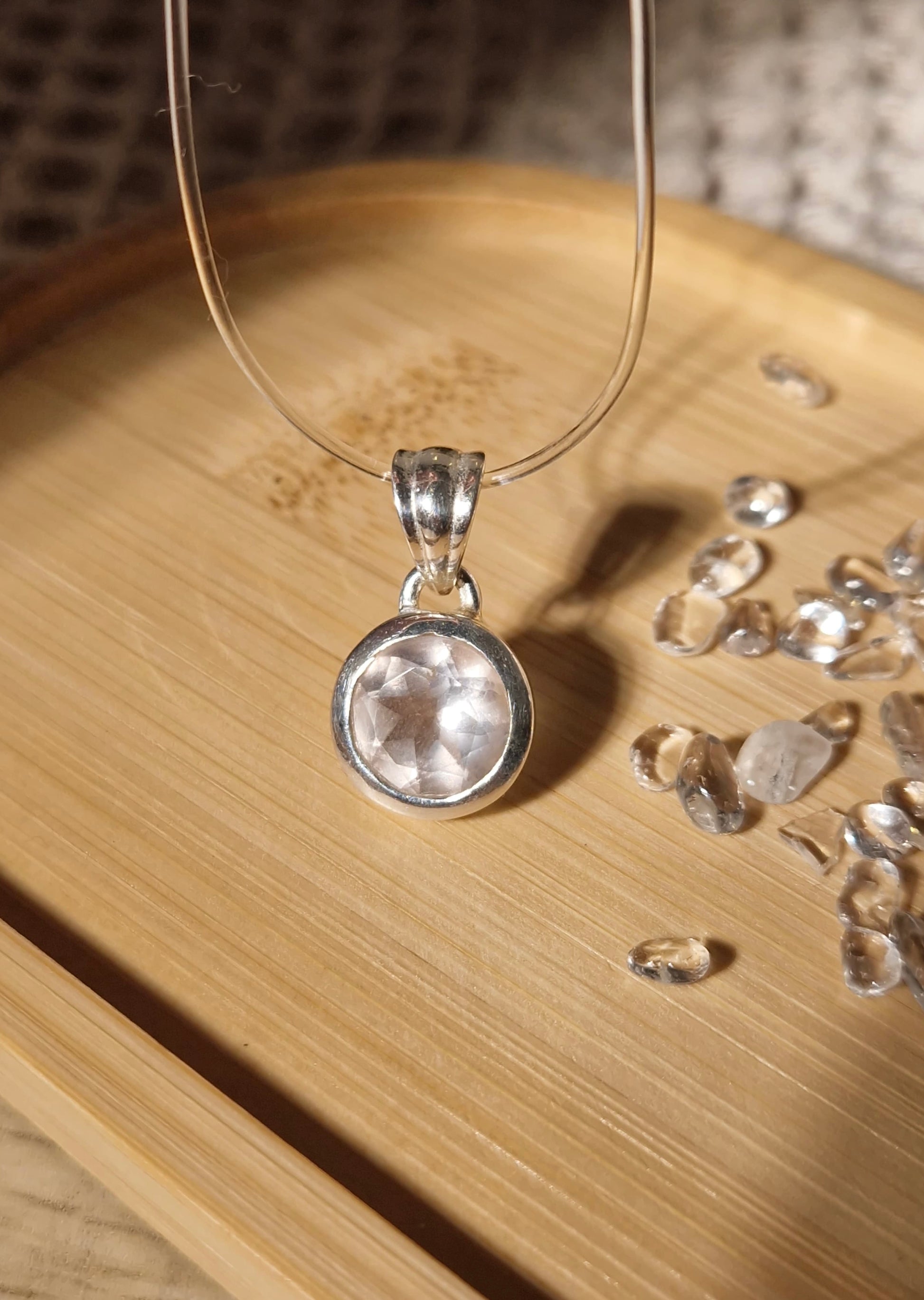 Rosenquarz facettierter Schliff Kettenanhänger 925 Silber
